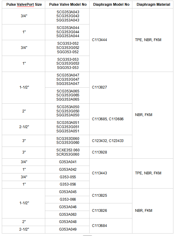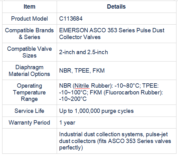 S1: C113684 diafraqma dəsti bütün EMERSON ASCO 353 Series impuls klapanları ilə uyğun gəlirmi?