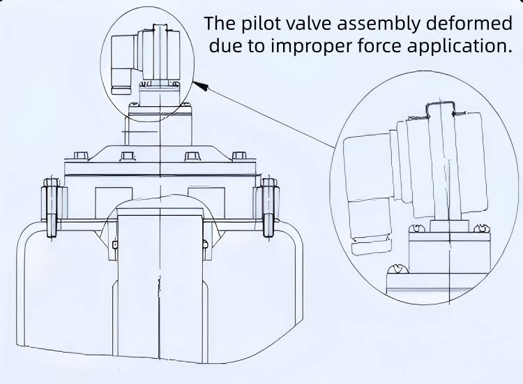 Quraşdırıldıqdan sonra qaynaq sıçramasının və ya diafraqmaların yüksək temperaturun zədələnməsinin qarşısını almaq üçün hava çənlərində, birləşdirilmiş flanşlarda və ya zərbə borularında qaynaq əməliyyatları qadağandır. Daşınma və ya quraşdırma zamanı solenoid klapan pilot qurğusunun zərbə zədələnməsinin qarşısını almaq üçün ehtiyatla davranın ki, bu da makara kolunu deformasiya edə, hərəkət edən gövdənin sıxışmasına və klapanın işləməsinə mane ola bilər.